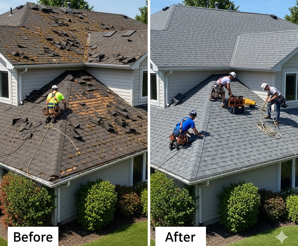 We had our shingle roof replaced, and the team did an outstanding job. They worked efficiently, cleaned up every day, and the new roof looks perfect. We feel much safer now knowing it’s done right.